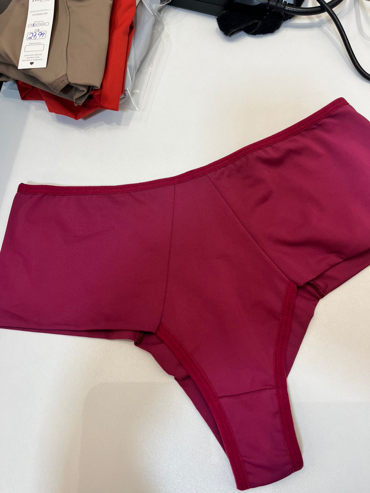 Calcinha de microfibra com poliamida, cós-alto, laterais largas comprimindo aquelas gordurinhas e fio duplo (sem costura no fio) não marca nas roupas, excelente para o dia a dia.